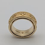 Sculpted in solid 14K Yellow Gold, its dual bands—polished and textured—intertwine in a harmony of strength and elegance. Ten hand-set diamonds and raised positivo emblems honor the spirit of detail, while milgrain edges whisper of heritage and grace.
