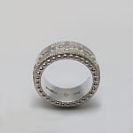 Thoughtfully designed for all, the positivo BEADED BAND RING is an icon of modern luxury. Cast in solid 925 Sterling Silver, this 8mm statement ring blends symbolic meaning with bold sophistication. The signature positivo “p sign” flower power motif wraps fully around the band in a seamless 360° sculptural design. Fine texture between each petal adds visual depth, while delicate micro-beaded edges and larger perimeter beads frame the piece with precision. The mirror-polished interior is meticulously presented with a laser-engraved positivo wordmark, an inlaid 18K yellow gold “p sign,” and a hallmark of authenticity, proving its artisan pedigree.