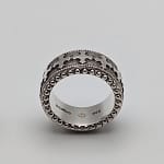 Thoughtfully designed for all, the positivo BEADED BAND RING is an icon of modern luxury. Cast in solid 925 Sterling Silver with a Black Oxidized finish, this 8mm statement ring blends symbolic meaning with bold sophistication. The signature positivo “p sign” flower power motif wraps fully around the band in a seamless 360° sculptural design. Fine texture between each petal adds visual depth, while delicate micro-beaded edges and larger perimeter beads frame the piece with precision. The mirror-polished interior is meticulously presented with a laser-engraved positivo wordmark, an inlaid 18K yellow gold “p sign,” and a hallmark of authenticity, proving its artisan pedigree.